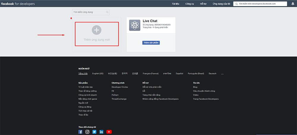 1. Đầu tiên, các bạn cần phải truy cập vào trang và tạo cho mình 1 ứng dụng bằng cách click vào nút Thêm ứng dụng mới (Add a New App).