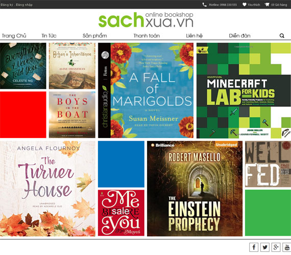 ADC Việt Nam Thiết kế website bán sách Online http://sachxua.vn. Nhà sách trên mạng lớn nhất Việt nam với trên 50000 đầu sách các loại gồm các chủ đề như: Kinh tế, văn học, tin học, thiếu nhi..., dịch vụ đặt hàng trực tuyến, giao hàng trong & ngoài nước